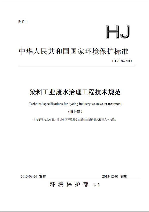 染料工業(yè)廢水治理工程技術(shù)規(guī)范(HJ 2036-2013)