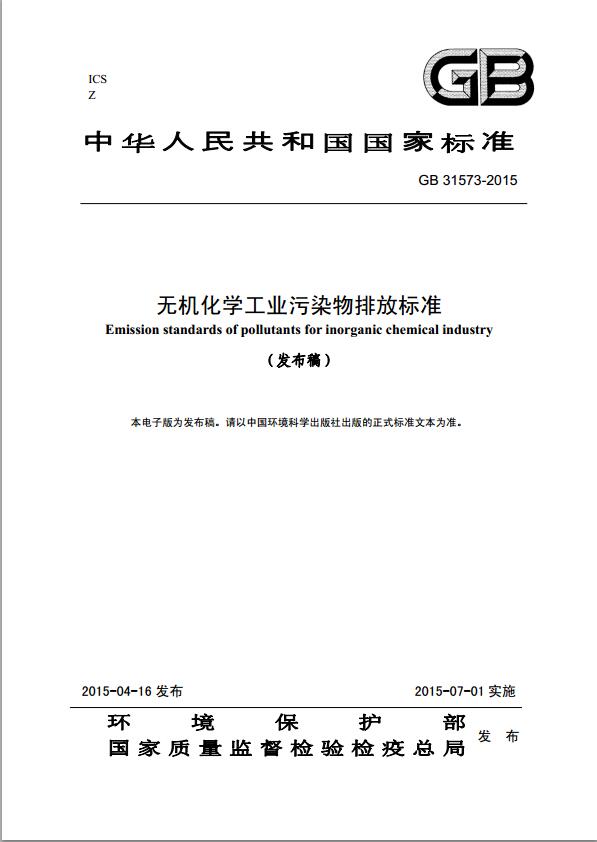無機化學(xué)工業(yè)污染物排放標準(GB 31573-2015)