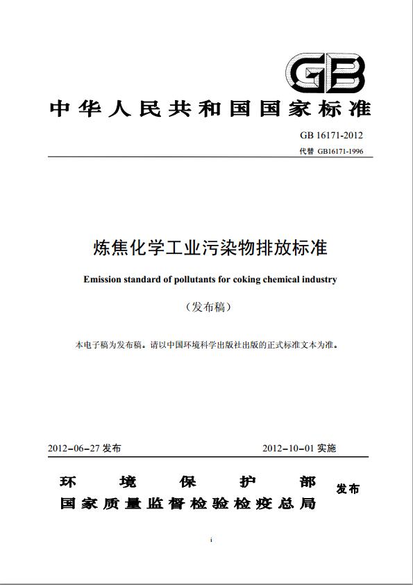 煉焦化學(xué)工業(yè)污染物排放標準(GB 16171-2012)