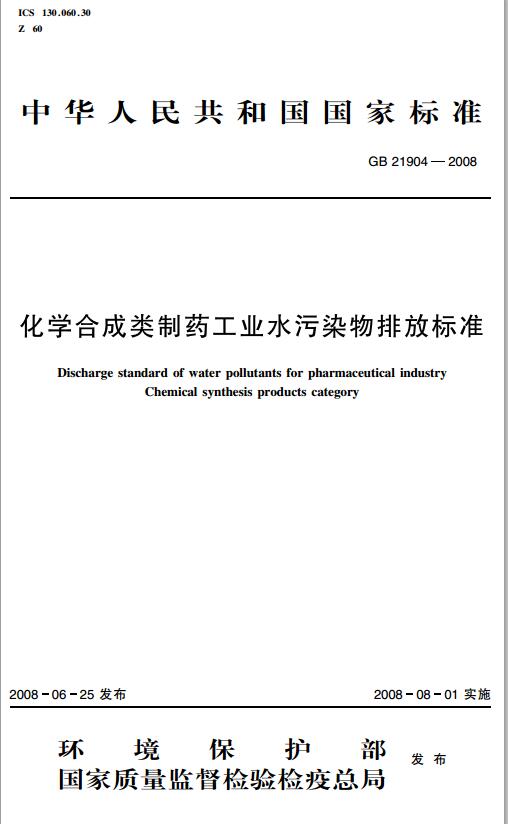 化學(xué)合成類制藥工業(yè)水污染物排放標準(GB 21904-2008)